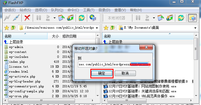 3. 解壓完成之后,把它通過FTP軟件移動到網站根目錄下面。(因為蝸牛是在自己博客的wordpress目錄下面給大家演示的,因此,蝸牛就直接把它移動到wordpress目錄下面。)