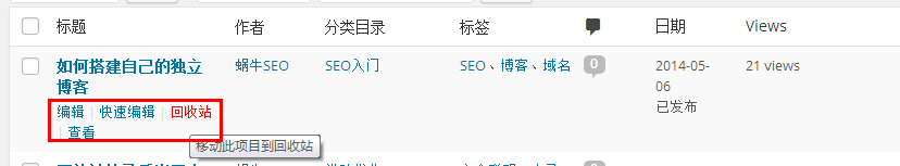 不知道是蝸牛笨還是怎么著,蝸牛是用了很久Wordpress之后才發現Wordpress可以直接后臺編輯,多數操作直接通過這里的編輯功能即可實現。