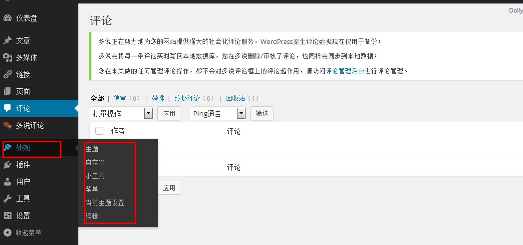 我們可以通過評論菜單管理Wordpress上面的評價。