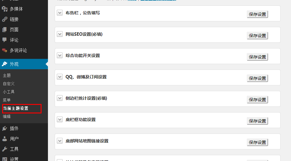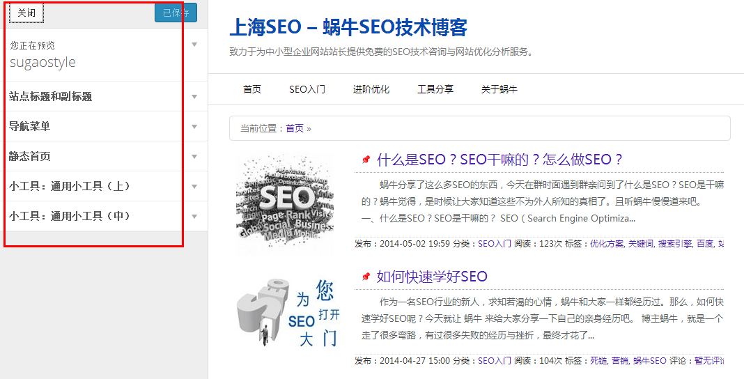 根據不同的主題,會有不同的設置,當然,有些主題下沒有這個當前主題設置,如果的話,大家可以根據項目的不同進行相應的設置。如有不明白或不清楚,可以直接訪問? 蝸牛SEO博客? ,或者加入? 蝸牛SEO? 的QQ群,你將得到快捷的技術支持。