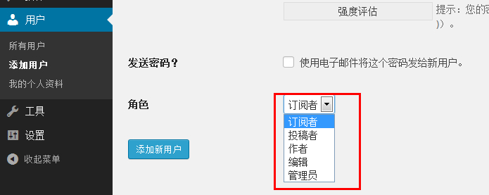 用戶菜單,是用來管理用戶的,可以添加刪除用戶或是管理員,訂閱者等。